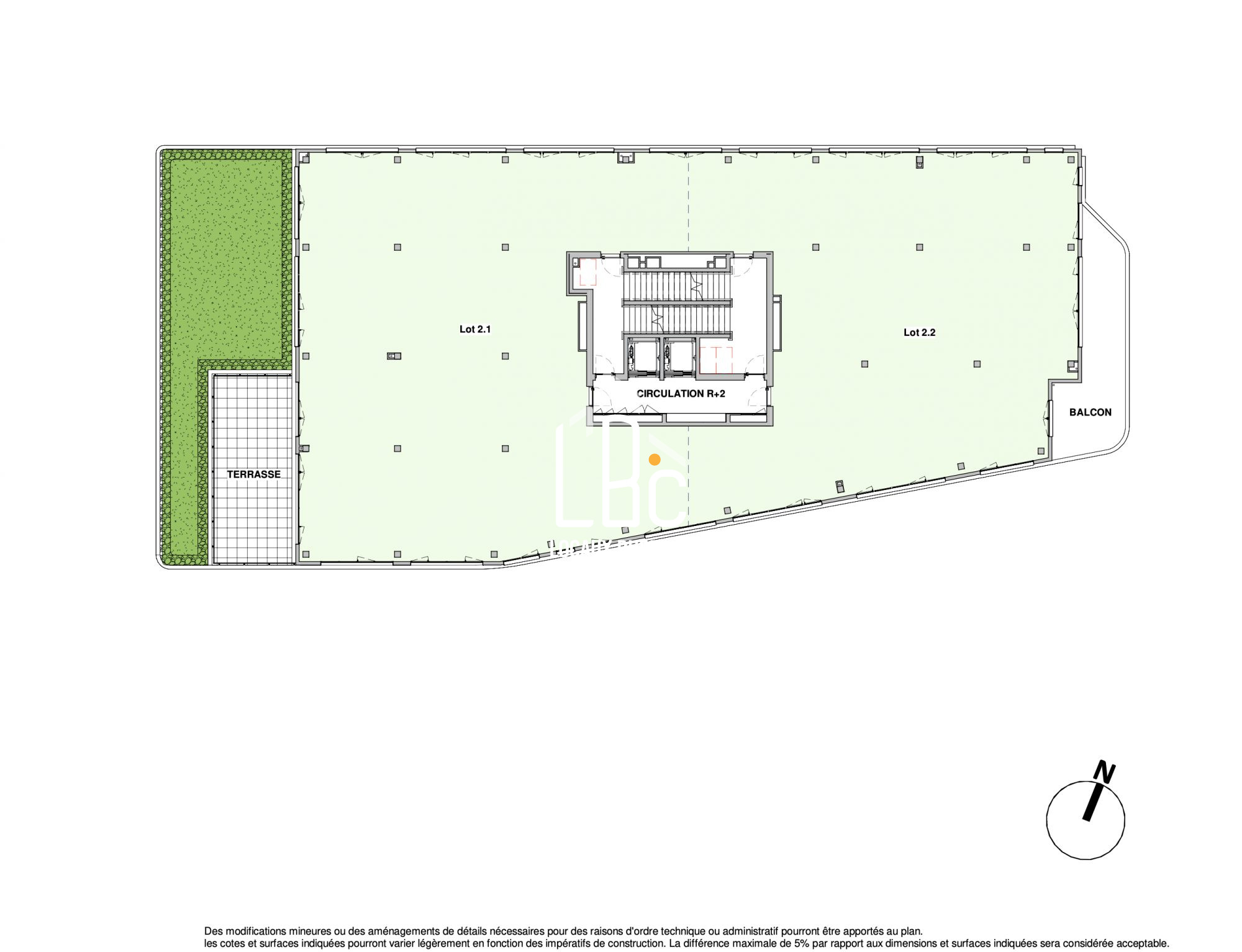 - Plateau de bureaux livré brut non cloisonné d'environ 294,50 m2, 25 m² environ de parties communes et 1 balcon d'environ 30 m2.