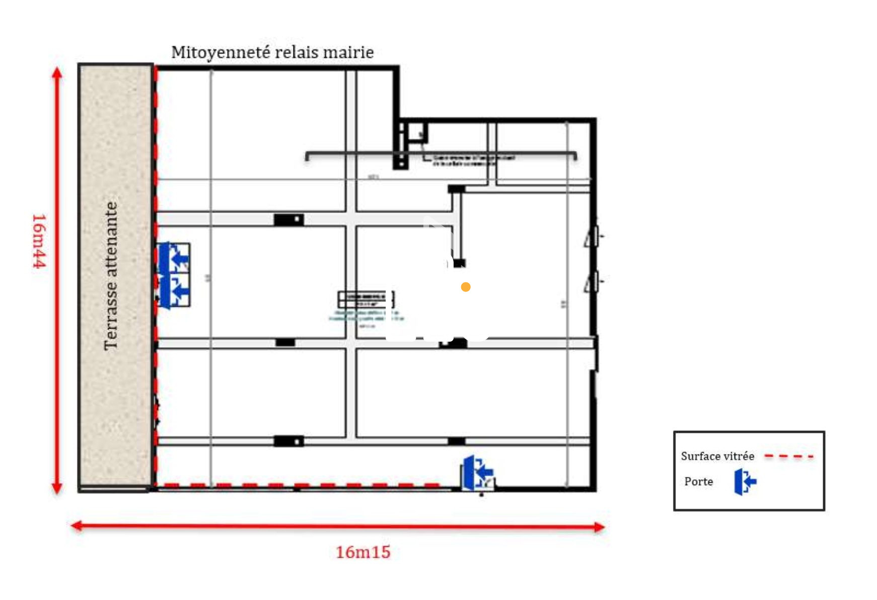 Terrasse possible en façade sur la place de la Fraternité en accord, sous réserve d'accord des services de l'urbanisme.