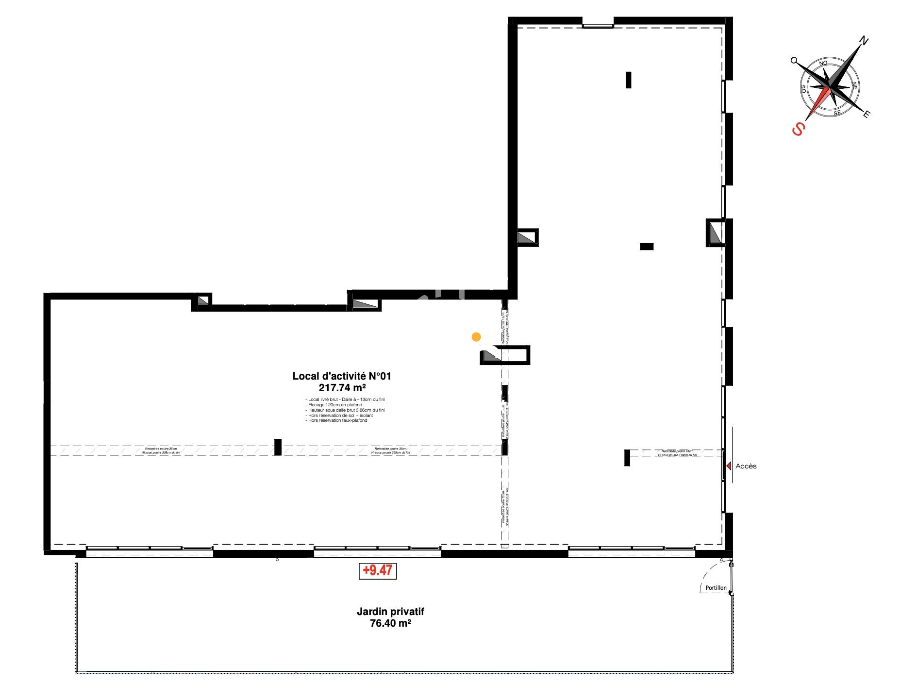 A vendre local commercial neuf de 216 m2 avec jardin privatif de 76,40m2