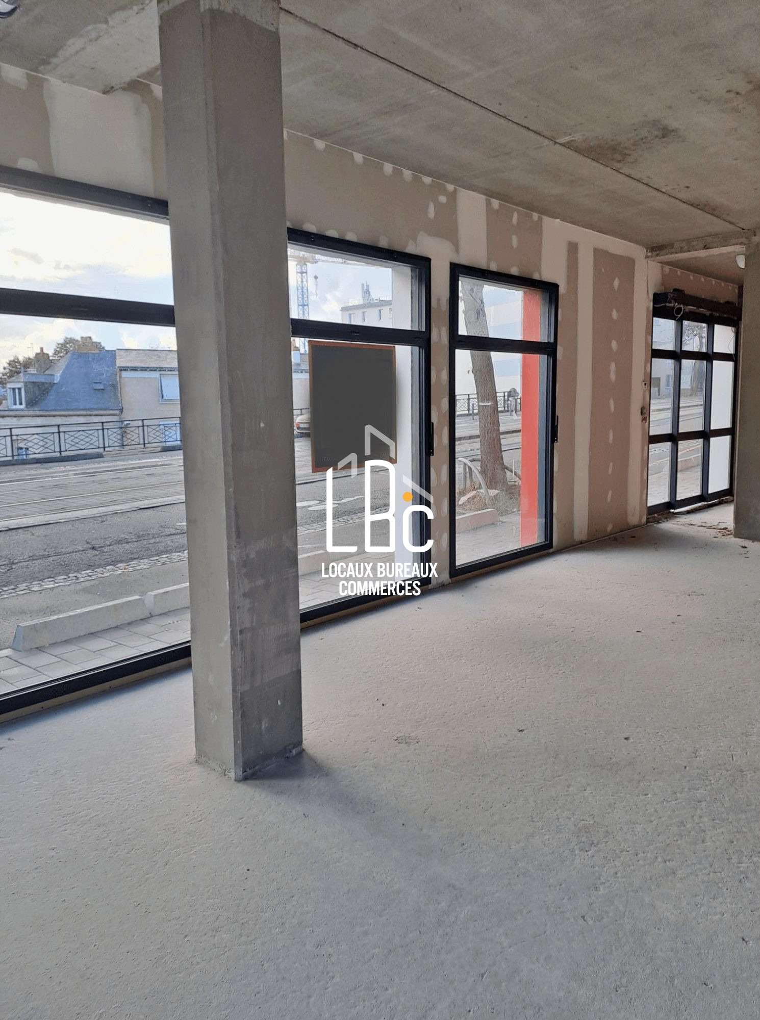 Le local est livré brut de béton, fourreaux en attente (fibre possible), huisserie posée.