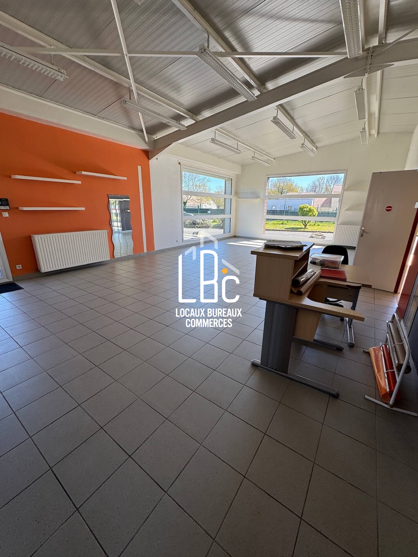Ce local d'activité d'une superficie totale de 150 m² est situé en zone artisanale et est disponible immédiatement. Il comprend un accueil/showroom carrelé de 56 m², des bureaux carrelés en open space de 38 m², une salle de pause carrelée équipée d'un évier et d'une chaudière à ventouse gaz, ainsi qu'un espace de stockage de 38 m² avec une porte sectionnelle. Le local dispose également de toilettes.Le chauffage est assuré par le gaz de ville. Le site est clos et paysagé, avec un portail extérieur dont la motorisation est à revoir. La parcelle, d'une superficie de 1117 m², offre des places de parking goudronnées et la possibilité de construire davantage.