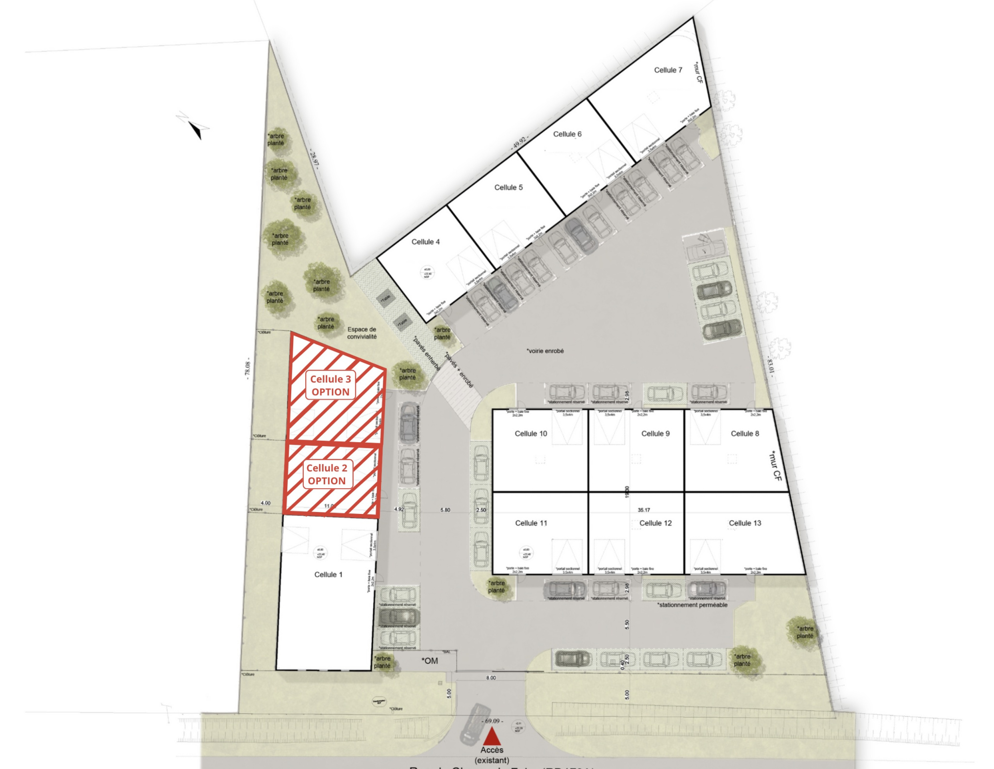 Le site bénéficie d'un environnement soigné avec voirie enrobée, allée pavée enherbée, espaces verts engazonnés et plantations d'arbres, offrant un cadre agréable et fonctionnel.