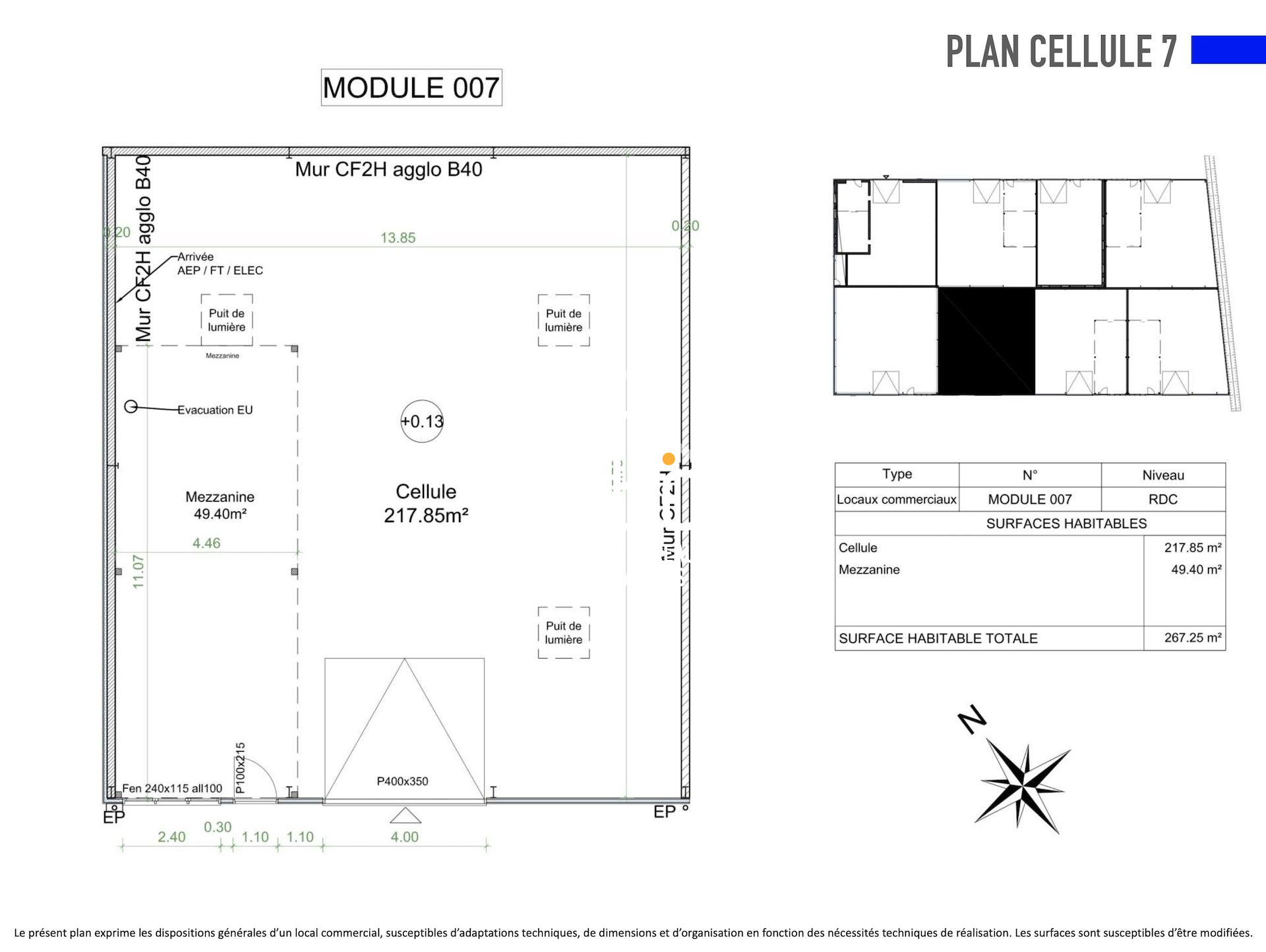 Local d'activité neuf d'environ 267,25 m² avec un espace de stockage d'environ 217,85 m² au sol et une mezzanine de 49,40 m².