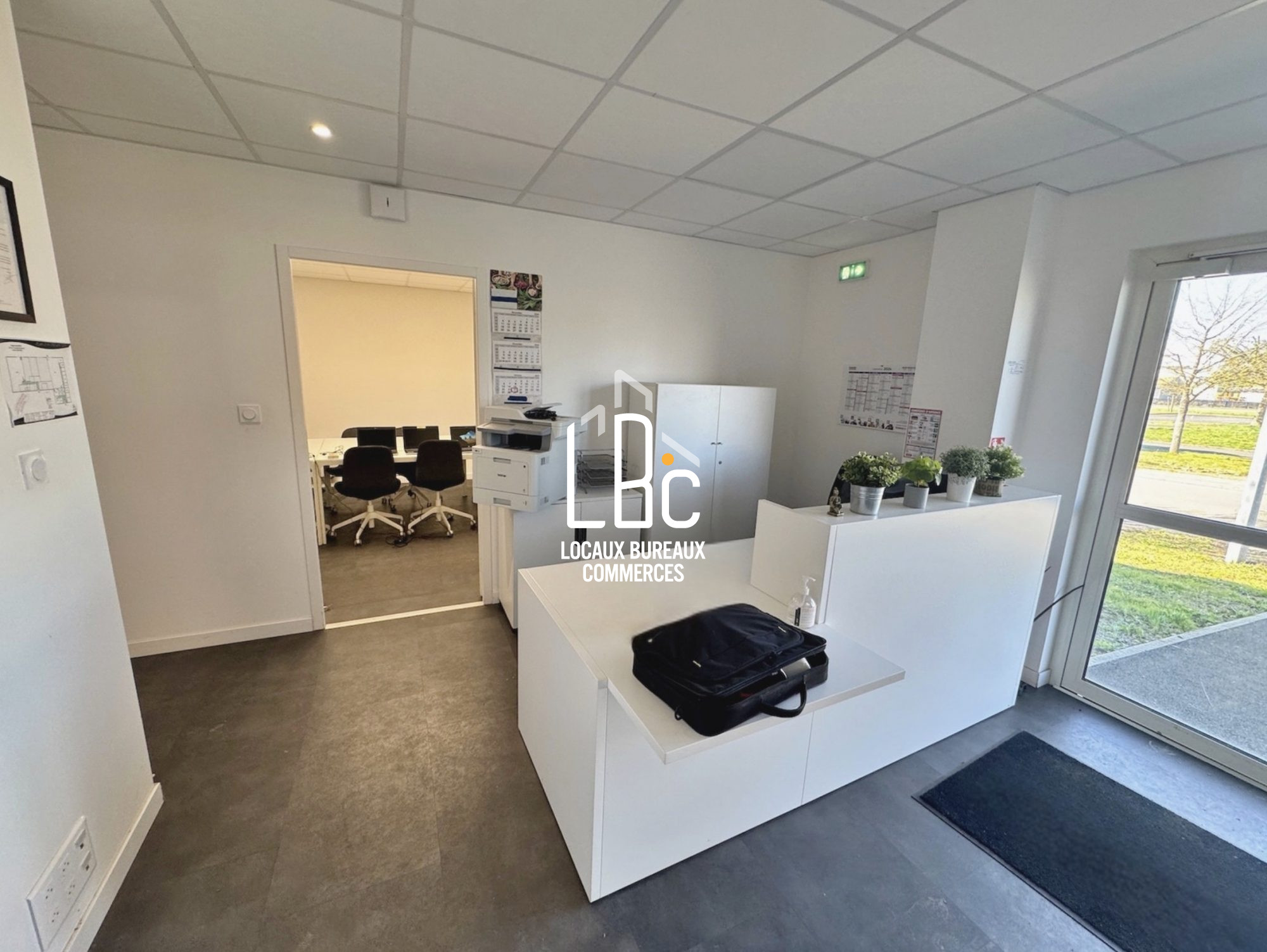 L'espace est idéalement agencé pour répondre à vos besoins avec un ensemble de bureaux de 217 m² aménagés et cloisonnés, comprenant un hall d'entrée, 8 bureaux, 2 salles de réunions, vestiaires et sanitaires hommes et femmes et un entrepôt de 189 m² équipé d'une porte sectionnelle. À l'extérieur, stationnements mutualisés.