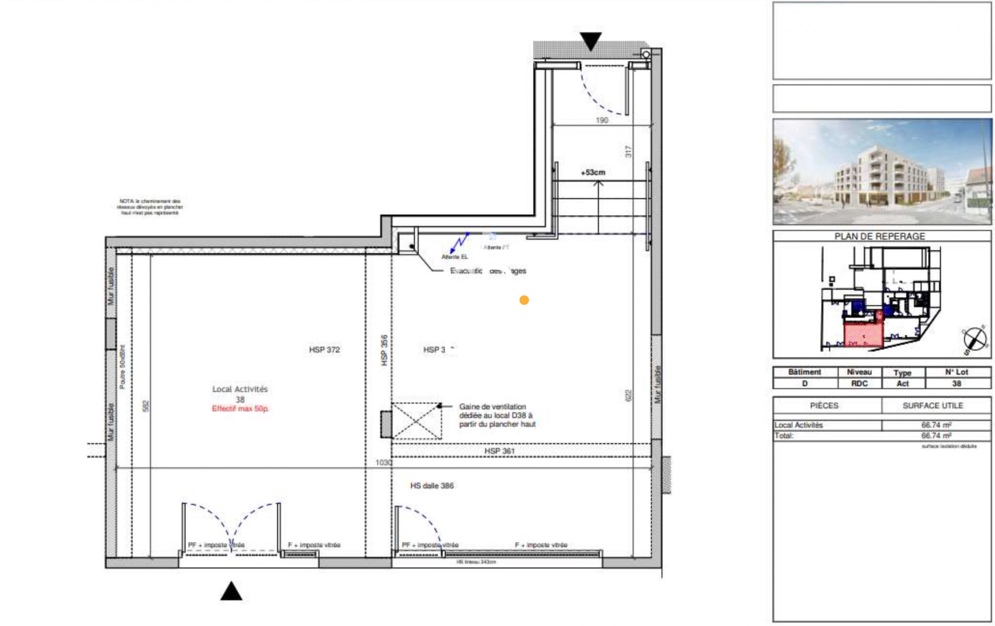 Dans le Quatrième Quartier le plus peuplé de NANTES : DOULON-BOTTIERE. Ce local commercial d'une surface de 67 m² environ sera livré brut de béton, réseaux en attente, huisseries posées.