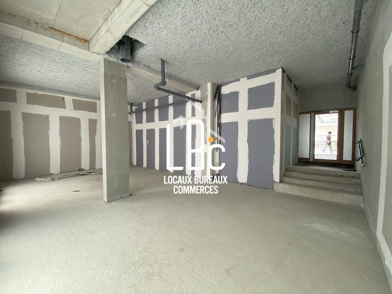 La cellule commerciale de 120 m2 environ est brut de béton, fourreaux en attente, huisserie posées.