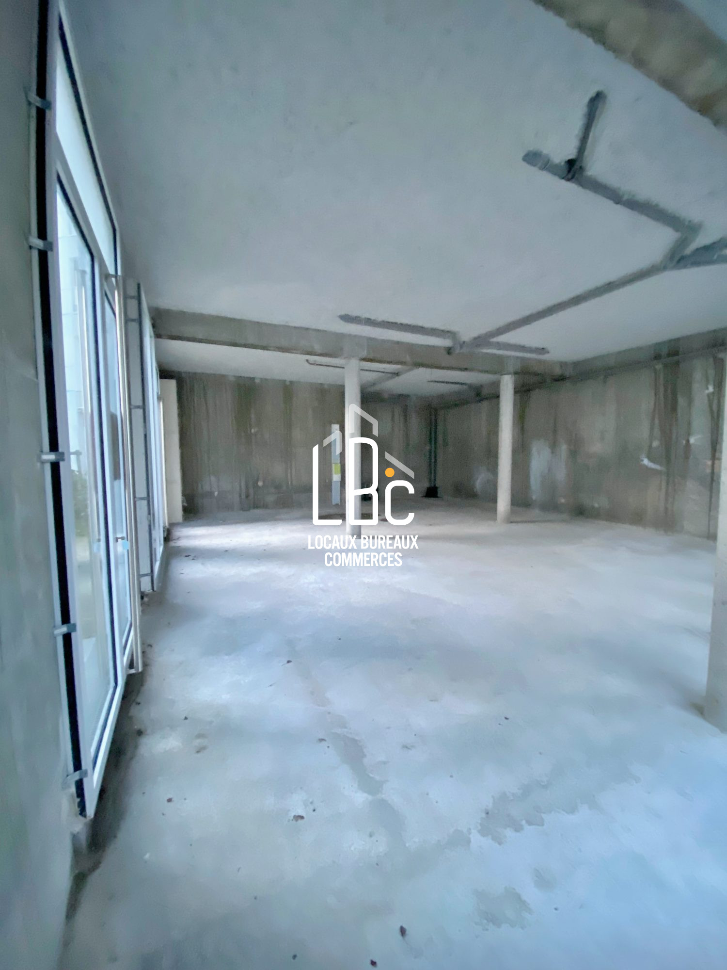 Le local est brut de béton, vitrines posées et fluides en attente.
